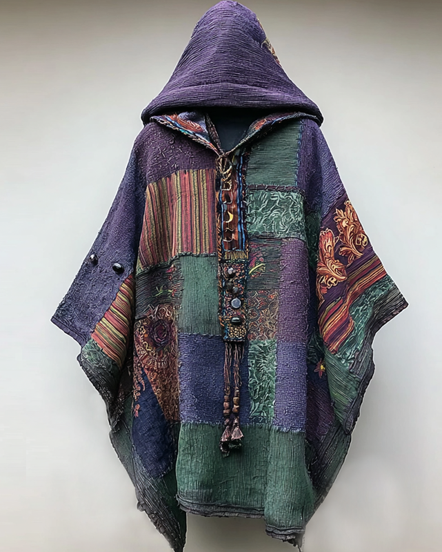 Irregular ethnic patchwork contrast color beaded cape b0ca