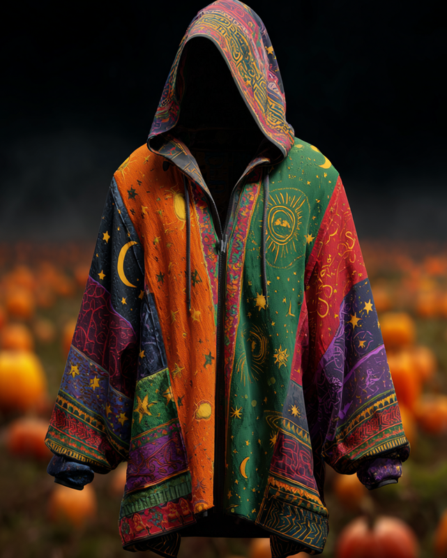Men's Star and Moon Embroidery Hooded Sweatshirt coat 0de9